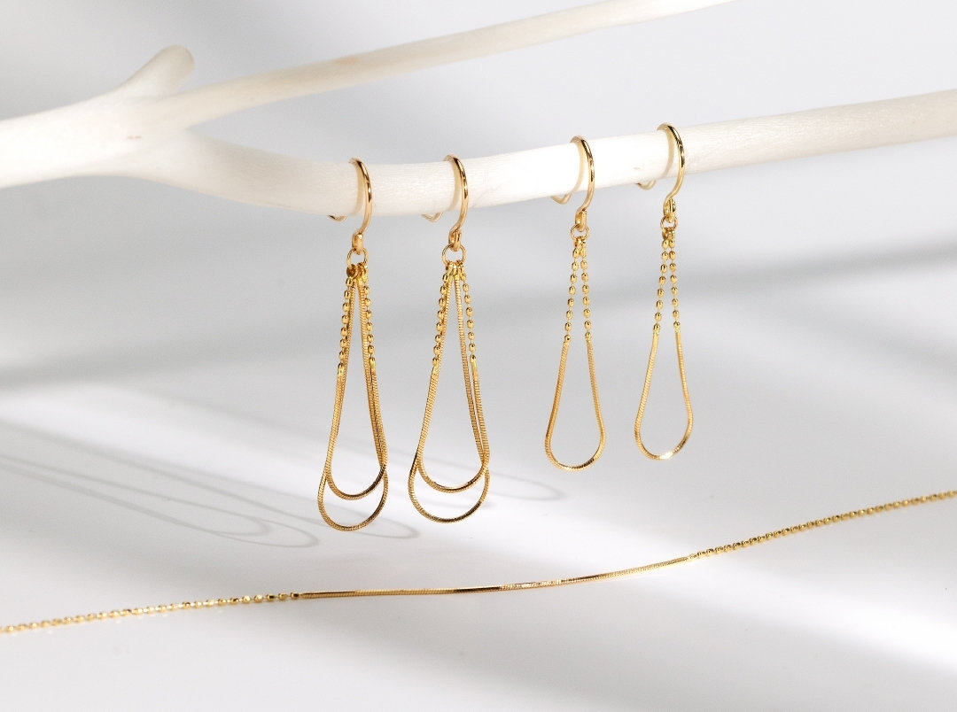 柔らかなフォルムが上品さを添え、秋の深まる季節にぴったりな地金ジュエリー。