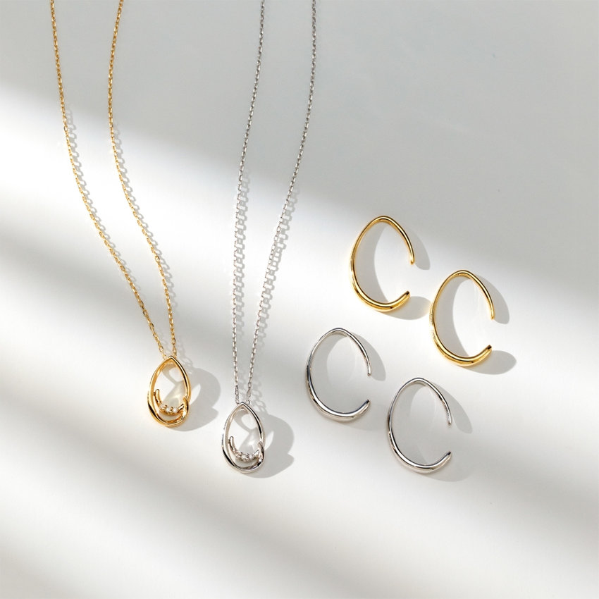 シンプルでベーシックな中に、ほんのりフェミニンな雰囲気を宿した、BLOOMらしい雫モチーフの地金ジュエリー。