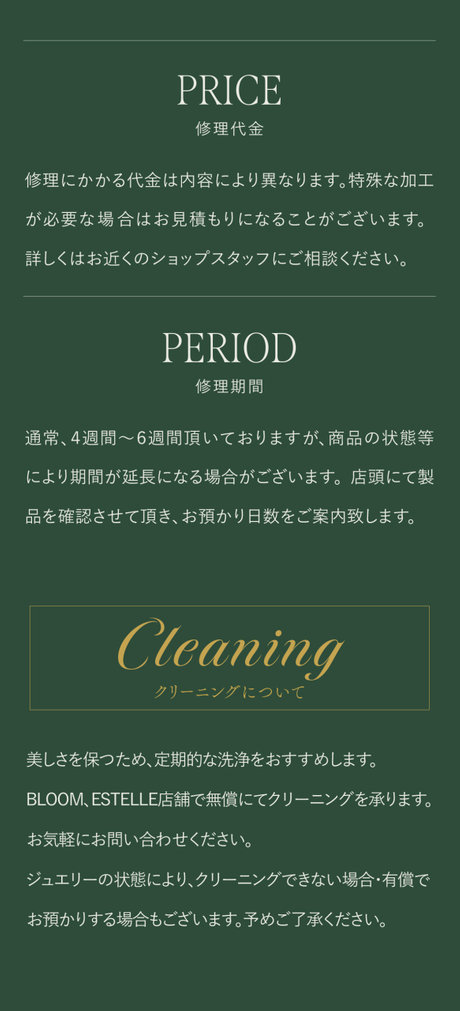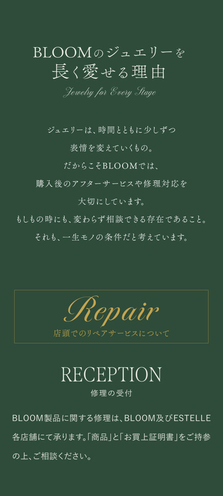 Eternally,inBLOOM -10年後も20年後も。あなたの人生に寄り添うジュエリー- ESTELLE エステール 【Heart&Cupid】K18 イエローゴールド ダイヤモンド ピアス(0.12ct)<H&C証明カード/スコープ付> ¥52,800 (税込) ESTELLE エステール 【Heart&Cupid】プラチナ ダイヤモンド ピアス<H&C証明カード/スコープ付> ¥52,800 (税込) ESTELLE エステール 【Heart&Cupid】K18 イエローゴールド ダイヤモンド ネックレス(0.1ct)<H&C証明カード/スコープ付> ¥77,000 (税込) BLOOM ブルーム 【Heart&Cupid】プラチナ ダイヤモンド ネックレス(0.12ct)<H&C証明カード/スコープ付> ¥99,000 (税込) ESTELLE エステール 【Heart&Cupid】K18 イエローゴールド ダイヤモンド ピアス(0.12ct)<H&C証明カード/スコープ付> ¥52,800 (税込) ESTELLE エステール 【Heart&Cupid】プラチナ ダイヤモンド ピアス<H&C証明カード/スコープ付> ¥52,800 (税込) ESTELLE エステール 【Heart&Cupid】K18 イエローゴールド ダイヤモンド ネックレス(0.1ct)<H&C証明カード/スコープ付> ¥77,000 (税込) BLOOM ブルーム 【Heart&Cupid】プラチナ ダイヤモンド ネックレス(0.12ct)<H&C証明カード/スコープ付> ¥99,000 (税込) BLOOM ブルーム 【2026スプリングコレクション】K18 イエローゴールド リング(指輪) ¥99,000 (税込) BLOOM ブルーム 【2026スプリングコレクション】K18 イエローゴールド リング(指輪) ¥82,500 (税込) BLOOM ブルーム 【2026スプリングコレクション】プラチナ リング(指輪) ¥71,500 (税込) BLOOM ブルーム 【2026スプリングコレクション】プラチナ リング(指輪) ¥60,500 (税込) BLOOM ブルーム 【2026スプリングコレクション】K18 イエローゴールド リング(指輪) ¥99,000 (税込) BLOOM ブルーム 【2026スプリングコレクション】K18 イエローゴールド リング(指輪) ¥82,500 (税込) BLOOM ブルーム 【2026スプリングコレクション】プラチナ リング(指輪) ¥71,500 (税込) BLOOM ブルーム 【2026スプリングコレクション】プラチナ リング(指輪) ¥60,500 (税込) BLOOM ブルーム 【Tanje】4月誕生石 K18 イエローゴールド ダイヤモンド リング(指輪) ¥198,000 (税込) BLOOM ブルーム 【Tanje】5月誕生石 K18 イエローゴールド エメラルド リング(指輪) ¥132,000 (税込) BLOOM ブルーム 【Tanje】6月誕生石 K18 イエローゴールド ムーンストーン リング(指輪) ¥132,000 (税込) BLOOM ブルーム 【Tanje】7月誕生石 K18 イエローゴールド ルビー リング(指輪) ¥132,000 (税込) BLOOM ブルーム 【Tanje】4月誕生石 K18 イエローゴールド ダイヤモンド リング(指輪) ¥198,000 (税込) BLOOM ブルーム 【Tanje】5月誕生石 K18 イエローゴールド エメラルド リング(指輪) ¥132,000 (税込) BLOOM ブルーム 【Tanje】6月誕生石 K18 イエローゴールド ムーンストーン リング(指輪) ¥132,000 (税込) BLOOM ブルーム 【Tanje】7月誕生石 K18 イエローゴールド ルビー リング(指輪) ¥132,000 (税込) Tanjeシリーズ一覧はこちら BLOOMの店舗検索はこちら ESTELLEの店舗検索はこちら 商品一覧はこちら 商品一覧はこちら TOPページへ戻る TOPページへ戻る