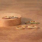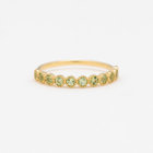 11石のバースストーンが煌めきあう、ハーフエタニティリング。ペリドットの輝きを引立てるミル打ちを施した細かな細工はセンスが感じ取れ、シンプルで華奢なシルエットはデイリーに着けられます。重ねづけを楽しむこともできる最適なリングです。