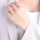 上下に波打つラインが指に巻きつくユニークなデザイン。スタイリングがバランスよく引き締まり、モードでこなれた雰囲気を与えてくれる頼もしい存在です。