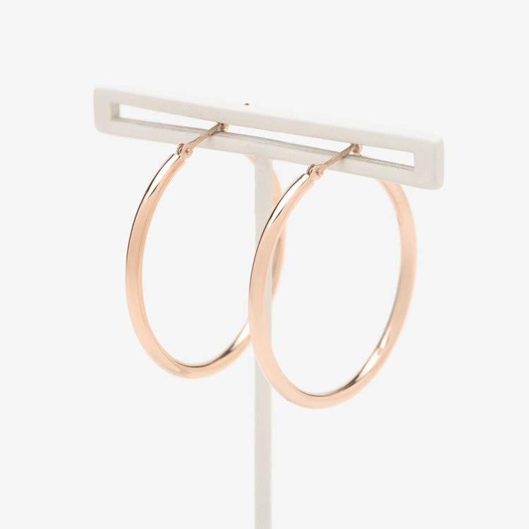 シンプルなフープピアスはスタイリングがしやすいベーシックアイテム。プレーンな細パイプの程よいサイズ感とキャッチレスな使用感はいつも着けていたいピアスです。ひとつは持っていたいシンプルなシルエットは普段使いやオフィスにもおすすめです。