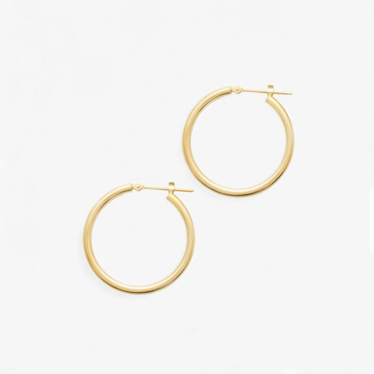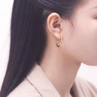 程よいボリューム感のフープピアスは大人カジュアルにもおすすめです。