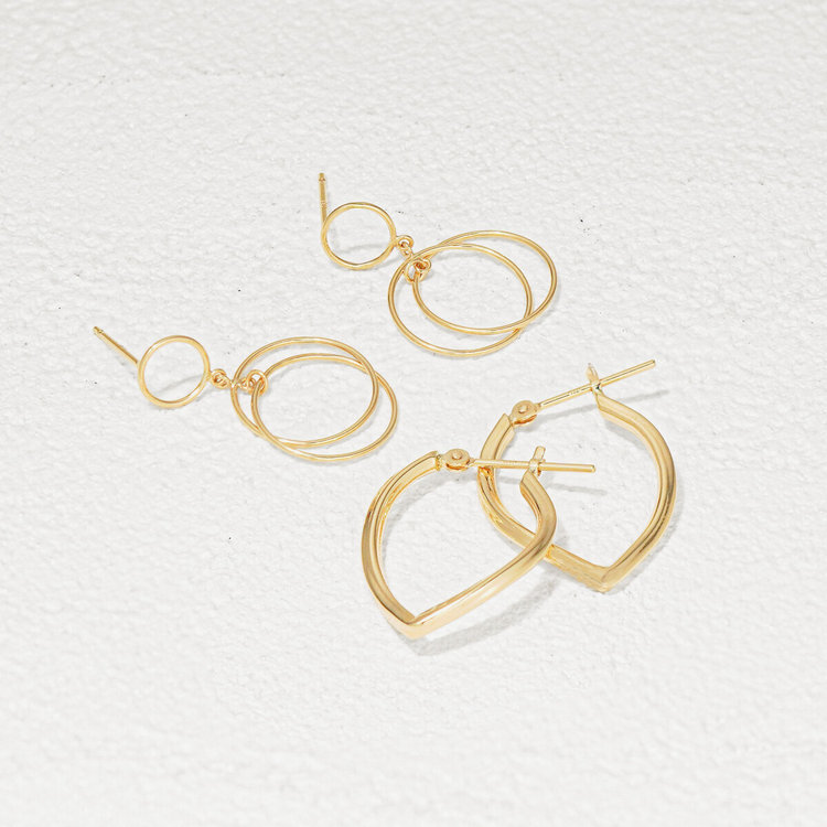 地金の輝きが美しいフープピアス。