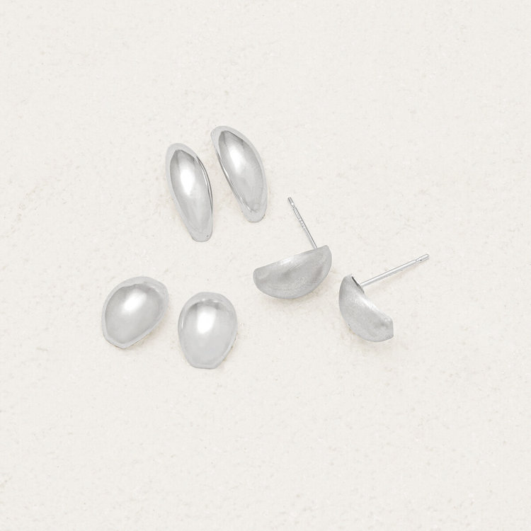 なめらかな地金のつるんとした光沢が耳元で輝きます。シンプルでほどよく存在感があるベーシックなスタッドピアスはスタイリングにアクセントをプラスします。