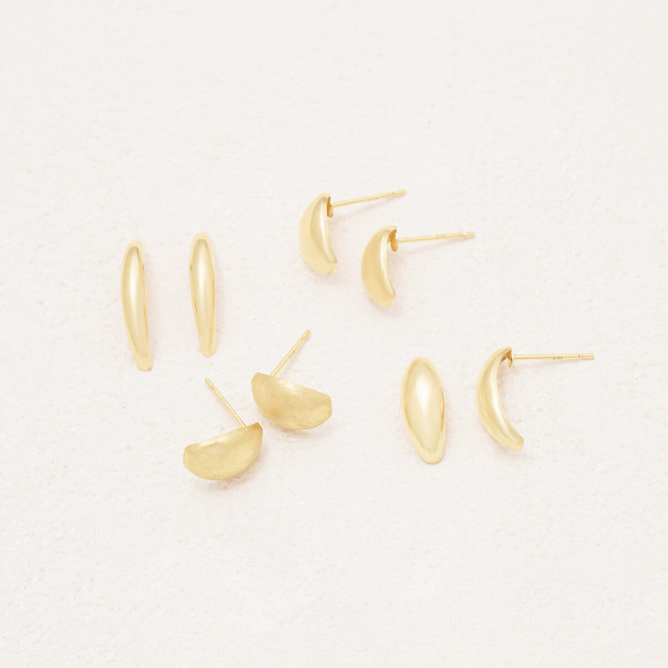 なめらかな地金のつるんとした光沢が耳元で輝きます。シンプルでほどよく存在感があるベーシックなスタッドピアスはスタイリングにアクセントをプラスします。