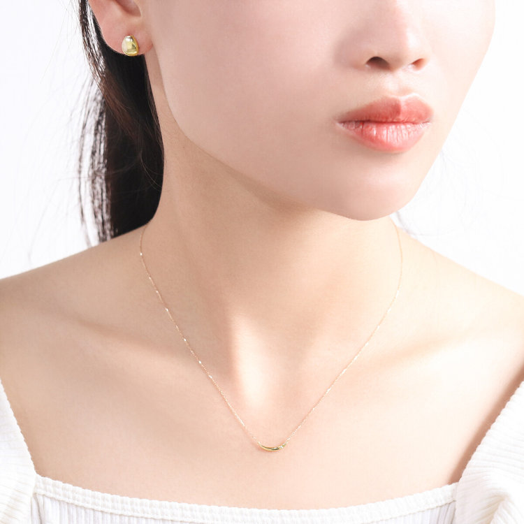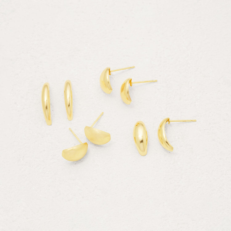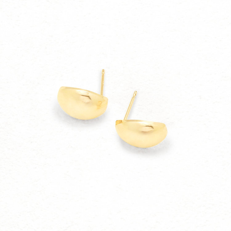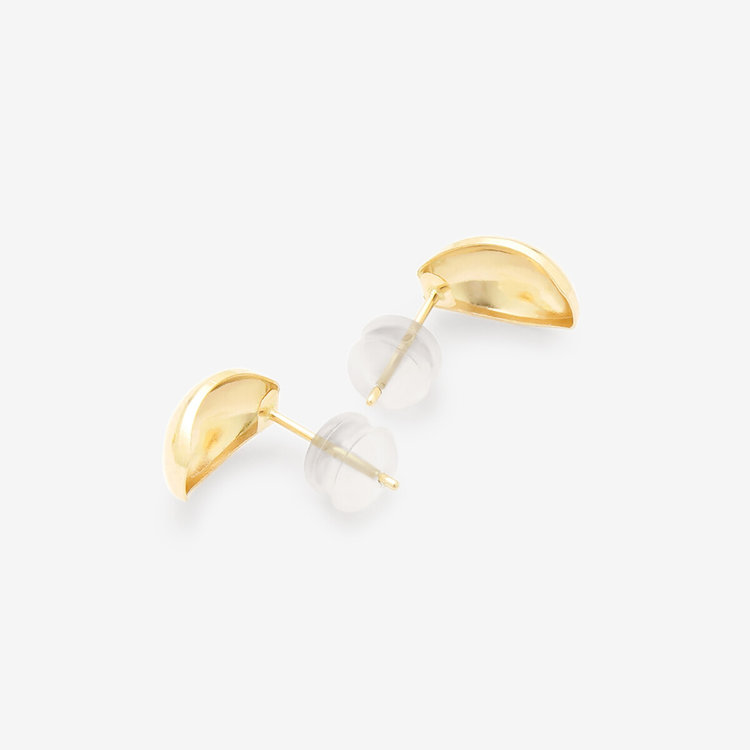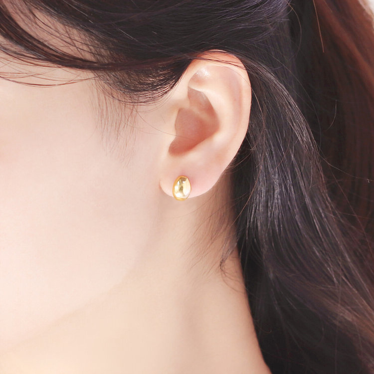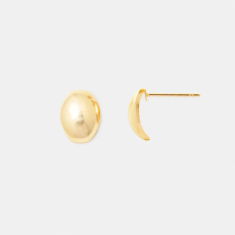 丸みを帯びたカーヴィフォルムのつるんとした光沢が耳元で輝きます。シンプルでほどよく存在感があるスタッドピアスはスタイリングにアクセントをプラスします。
