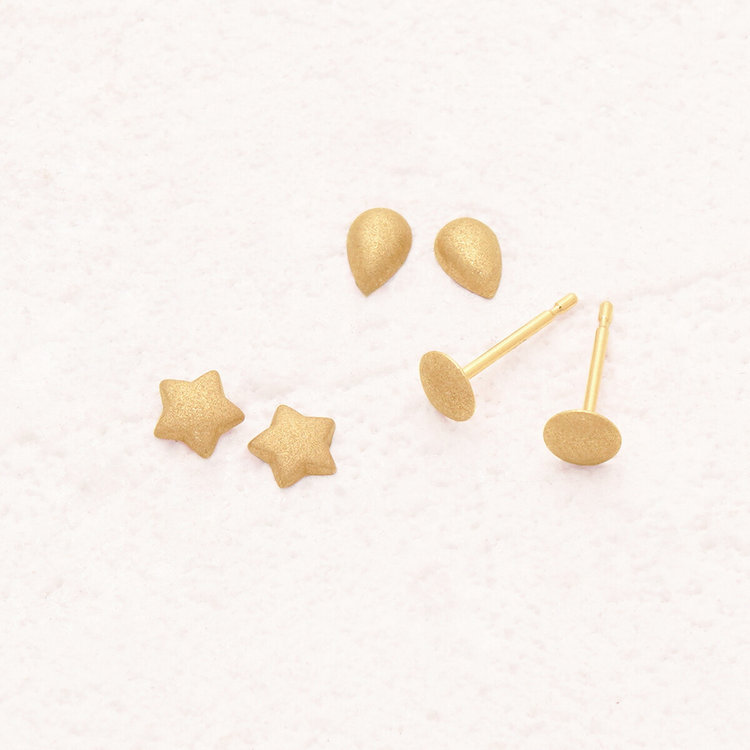スターダスト仕上げの程よいキラキラ感が柔らかく耳元で輝きます。小さくて肌馴染みが良いコクーンシルエットのスタッドピアスはスタイリングがしやすいベーシックアイテムです。