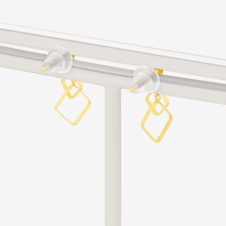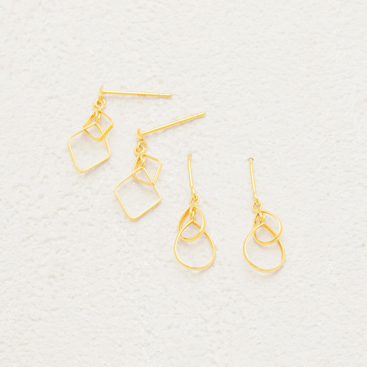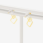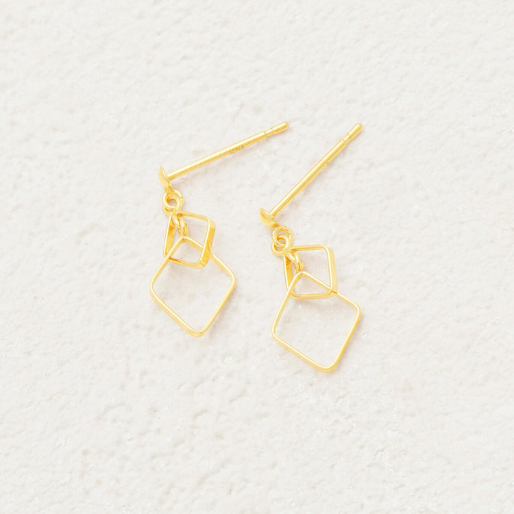 スクエアが重なっているデザインはポップな雰囲気に。揺れることでキュートさが増すエアリーなピアスはさらりと着けるのがおすすめです。