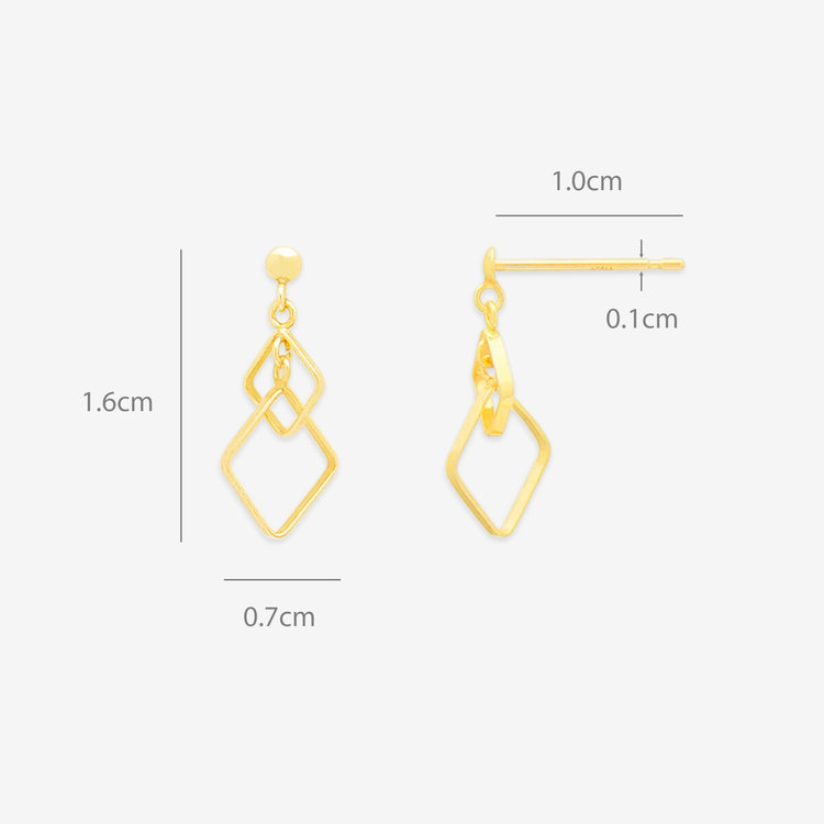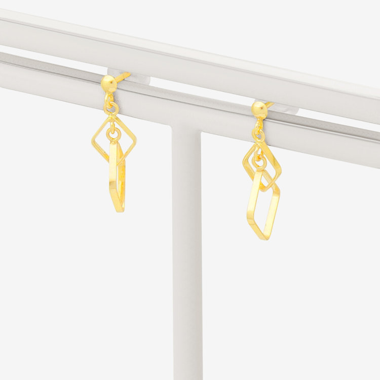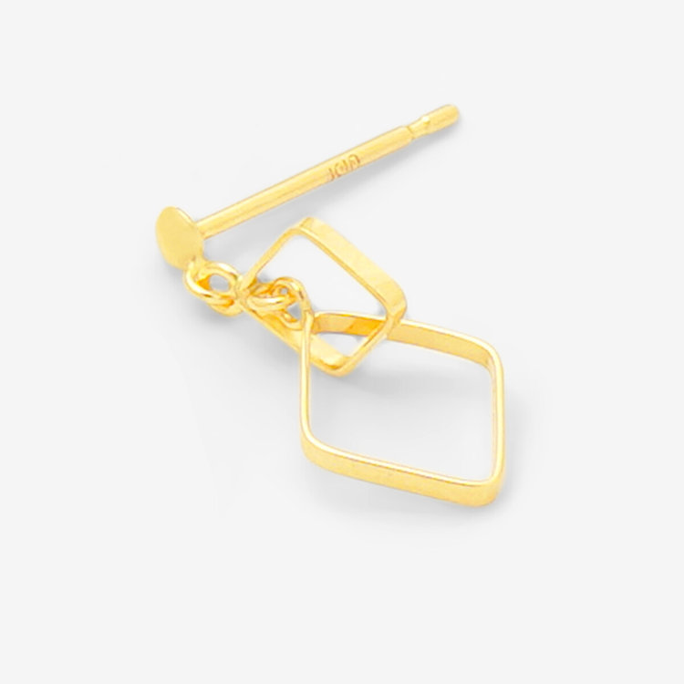 イエローゴールドのスクエアピアス。