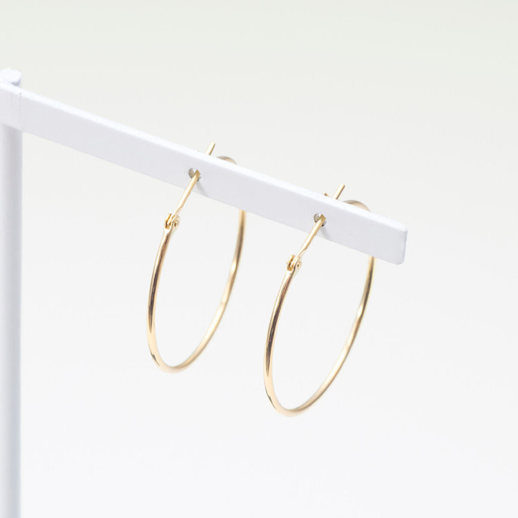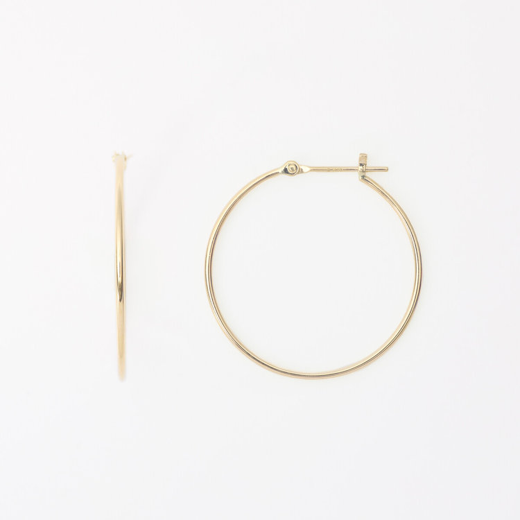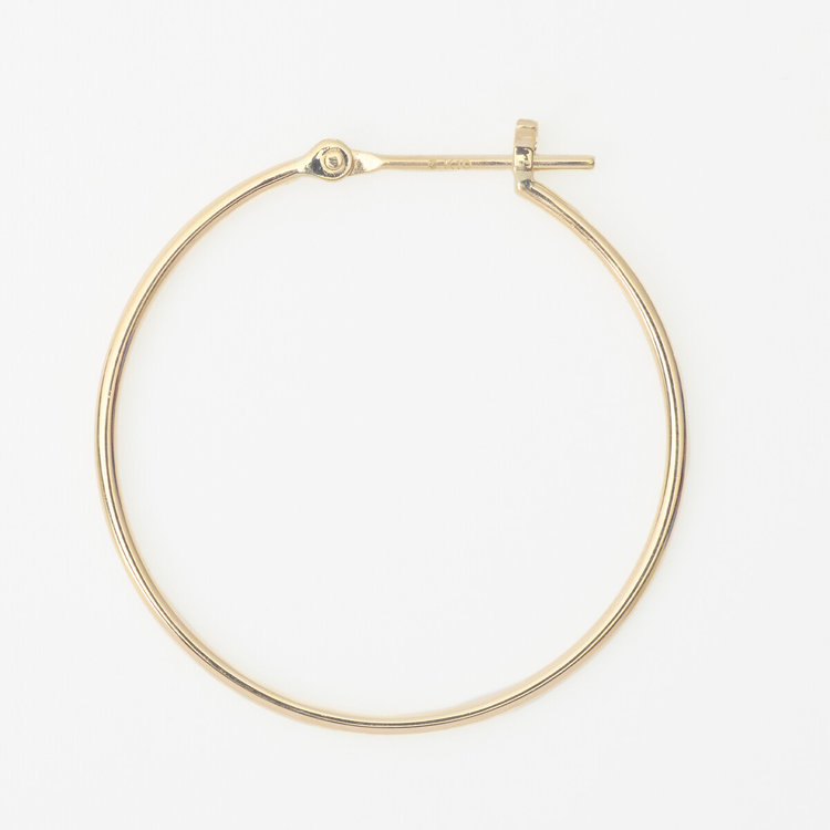シンプルなフープピアスはスタイリングがしやすいベーシックアイテム。プレーンな細パイプの程よいサイズ感とキャッチレスな使用感はいつも着けていたいピアスです。ひとつは持っていたいシンプルなシルエットは普段使いやオフィスにもおすすめです。