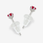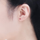シンプルな一粒のスタッドピアスはどんな装いにも合わせやすく、ルビーの赤い色合いが耳元でアクセントに。