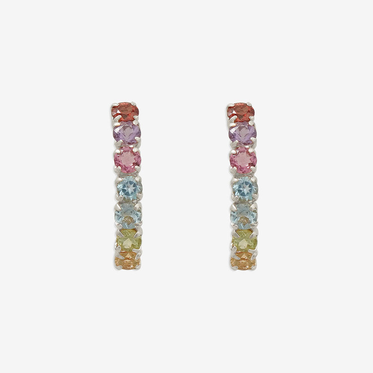 マルチカラーのストーンがアクセントのピアス。