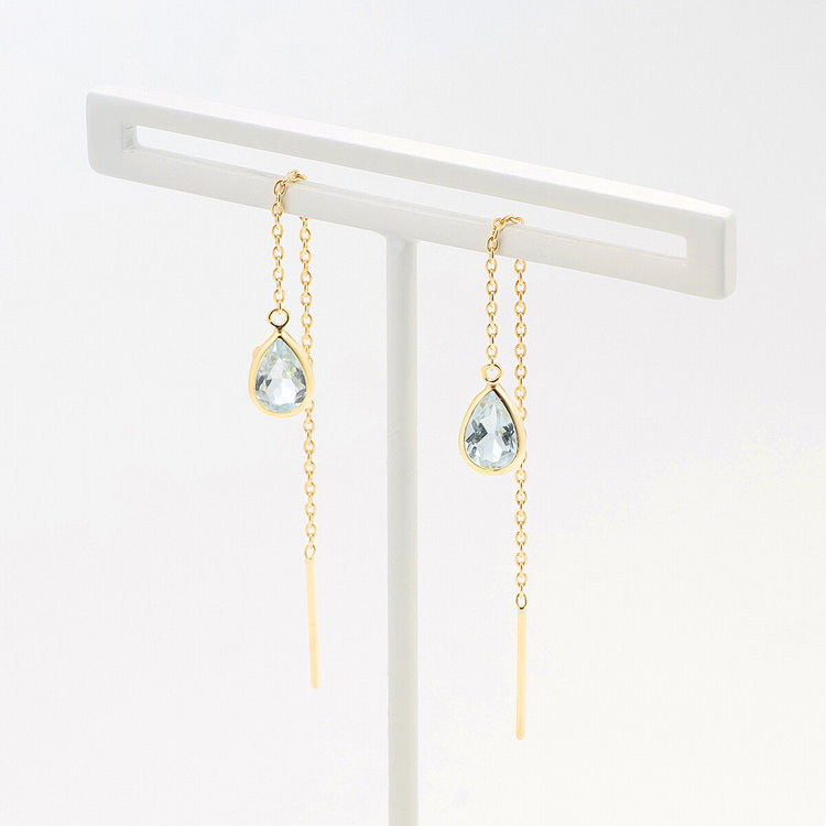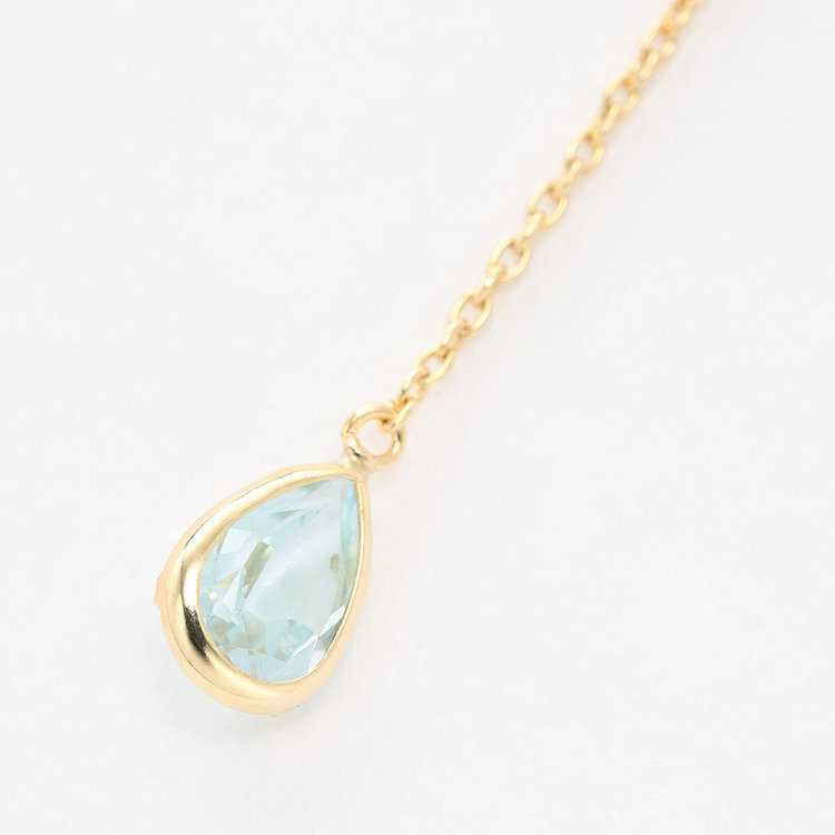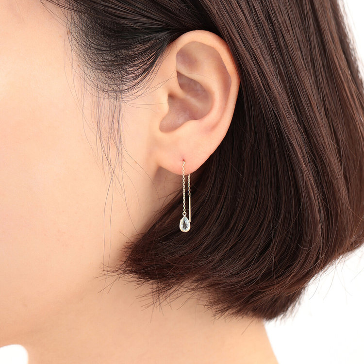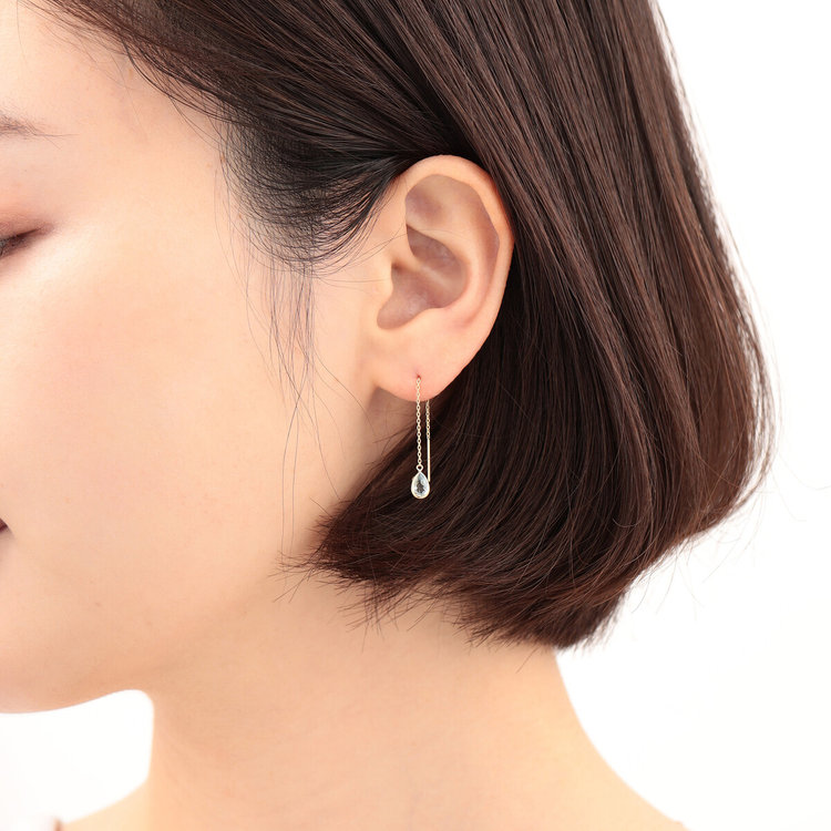 ティアドロップのスカイブルートパーズが印象的なアメリカンピアス。動くたびにスカイブルートパーズが揺れるピアスは何気ないしぐさが印象的に映ります。