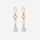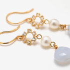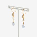 天然石ならではの優しい煌めきが顔周りを華やかに彩ります。 ブルーカルセドニーのニュアンスブルーが優しいモード感をつくりスタイルを洗練された印象にします。