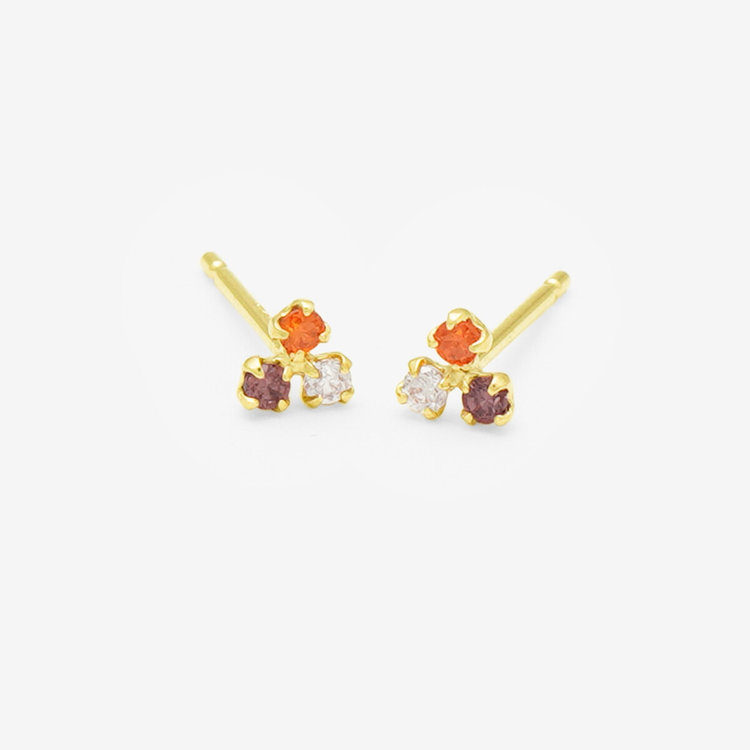 マルチカラーのキュービックジルコニアが印象的な耳元を演出するイエローゴールドのピアス。小ぶりなサイズのピアスは、デイリーに使いしやすくギフトにもおすすめです。