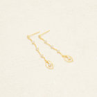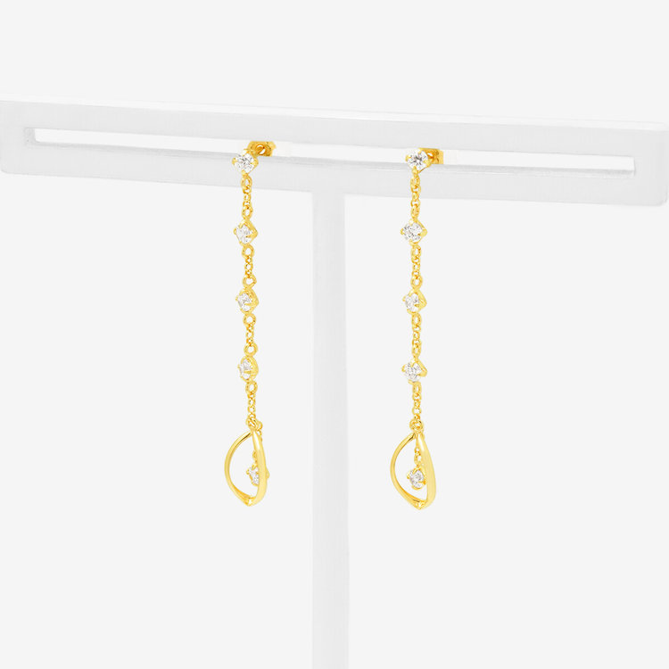 デザインされた繊細なチェーンは女性らしい耳元をつくります。揺れるシンプルなシルエットはコーディネイトに上品さをプラスします。