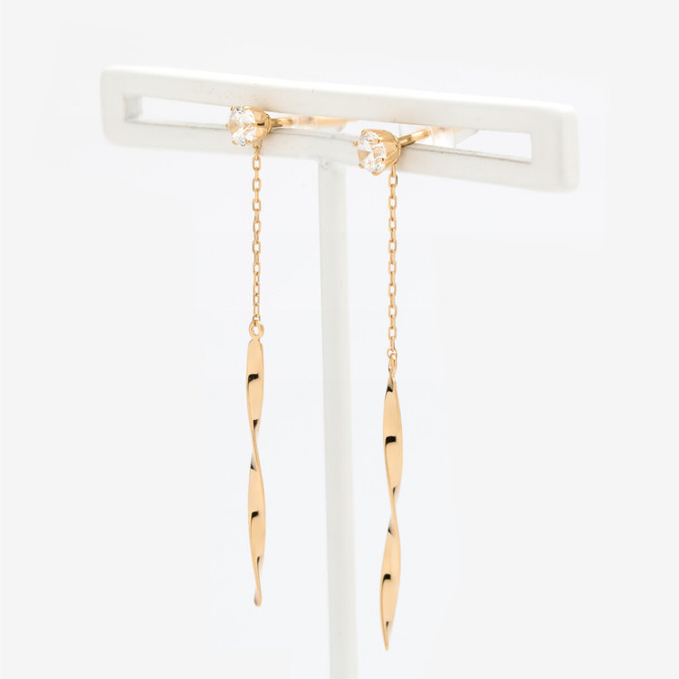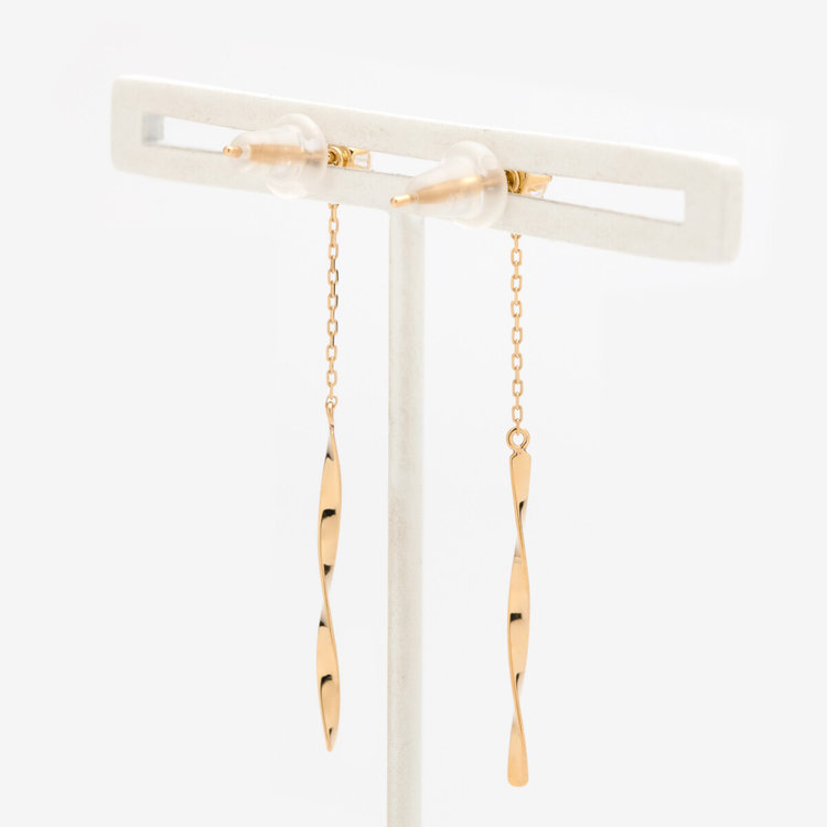 揺れるたびにキラリと輝くイエローゴールドの流れるようなラインが美しいピアス。