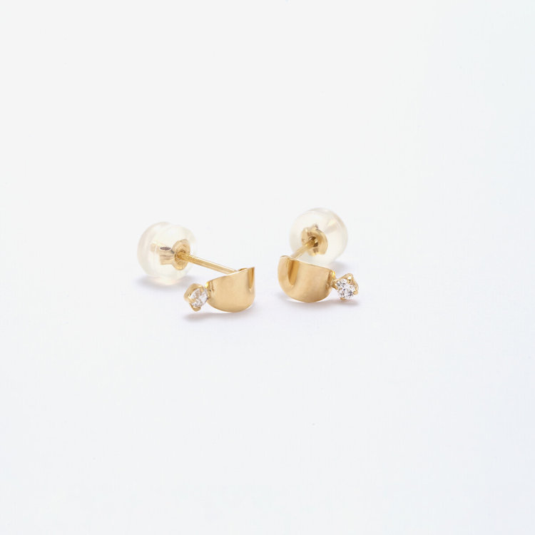 【FOR EARS】オーバルモチーフのイエローゴールドピアス。シンプルなオーバルモチーフにキュービックジルコニアが可愛らしさをプラスします。プチサイズのピアスはコーディネートに取り入れやすくデイリーに着けられます。【ATTENTION】※着用後は柔らかな布でジュエリーを拭き保管してください。※熱や紫外線、湿度の影響により変色や変質することがございます。また、強い力を加えると不良の原因となりますので、お取り扱いにはご注意ください。