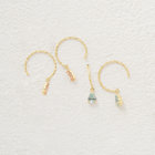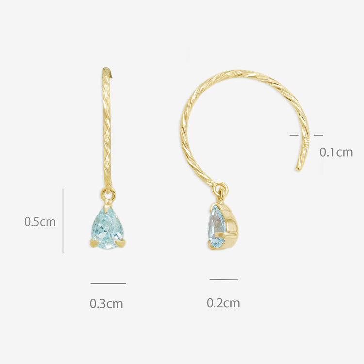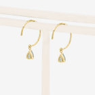 フック部分のひねりデザインと、揺れ感が可愛い小さめのペアシェイプモチーフが、さり気ない耳元へのおしゃれにちょうど良く、日常のスタイリングに取り入れやすいピアスです。