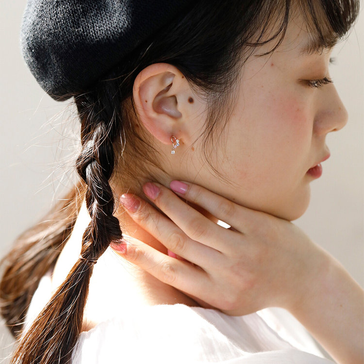 【Ear Jewelry】ピンク、ホワイト、ラベンダーカラーのキュービックが並ぶピアス。ハートモチーフと優しい色合いのカラーストーンで、華やかな雰囲気がプラスされます。【ATTENTION】※ご使用後は柔らかな布で汚れを拭き取って保管してください。※熱や紫外線、湿度の影響により変色や変質の恐れがございます。また、強い力を加えると不良の原因となりますので、お取り扱いにはご注意ください。※旧品番AGEP0073RVと同一商品です。