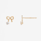 【Ear Jewelry】K10 イエローゴールド キュービックジルコニア リボン ピアス