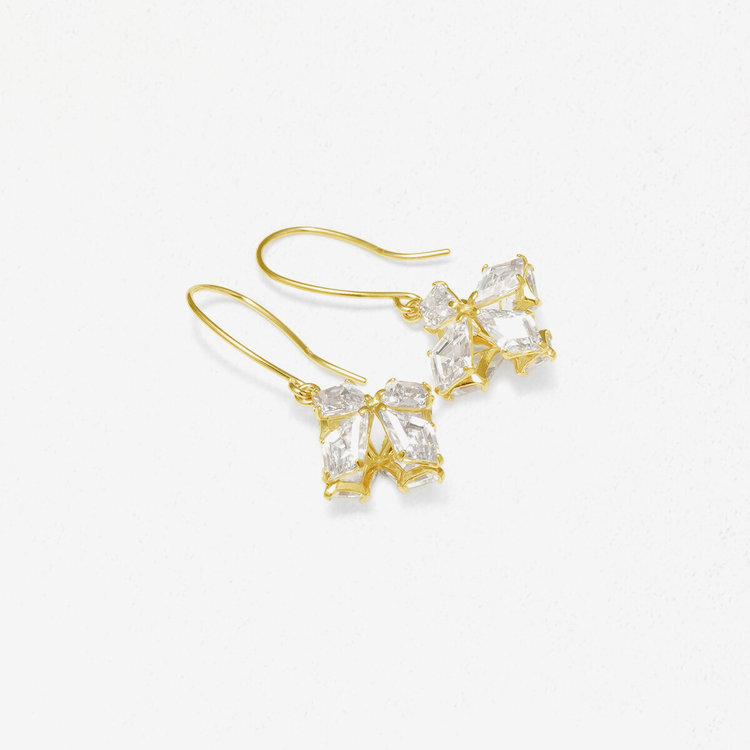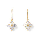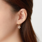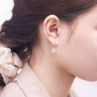 花びらのようにも紋章の様にも見えるデザインのピアス。耳元できらめく光が魅力敵です。サイズ感は程よくオフィスなどでもオススメなデイリーに使えるピアスです。