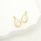 あこや真珠の柔らかな艶がアクセントになるイエローゴールドのピアス。