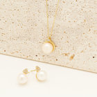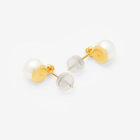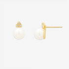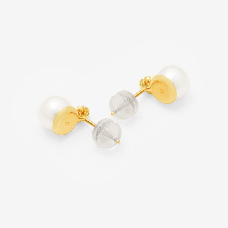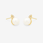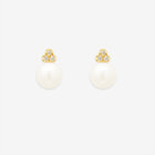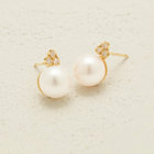 あこや真珠をイエローゴールドで包み込み、どこかクラシカルな雰囲気のピアス。