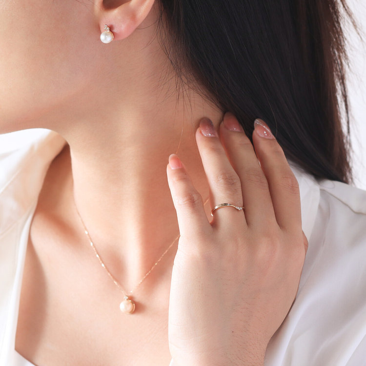 フォーマルな印象を残しつつ、カジュアルなスタイルにも合わせやすいデザインです。温かみのある柔らかなテクスチャーのパールジュエリーがぐっと身近な存在に。どんなシーンでも活躍してくれる優秀なアイテムです。