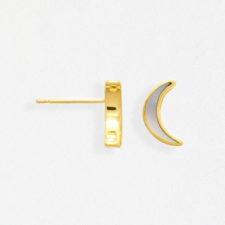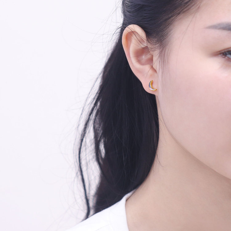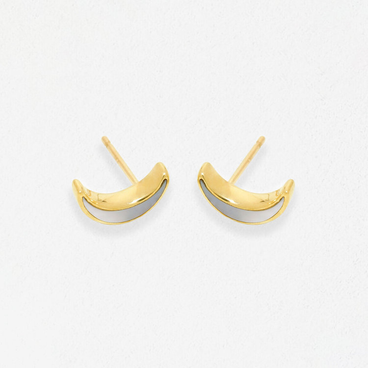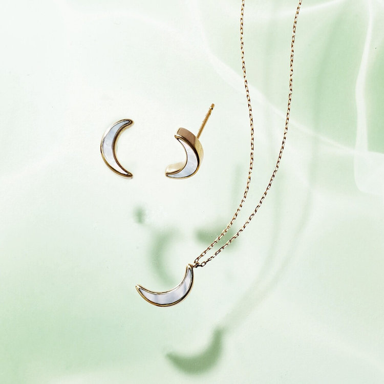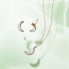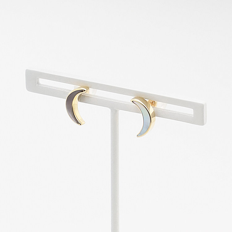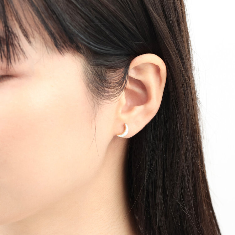 白い三日月が浮かんでいるような白蝶貝ピアス。