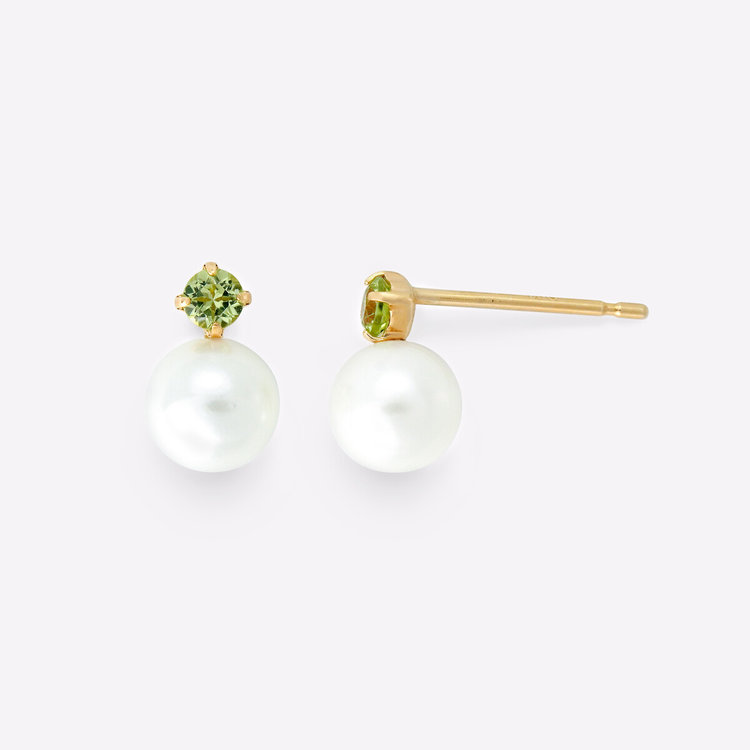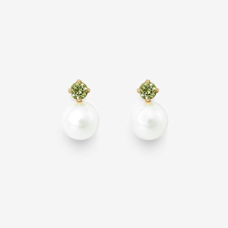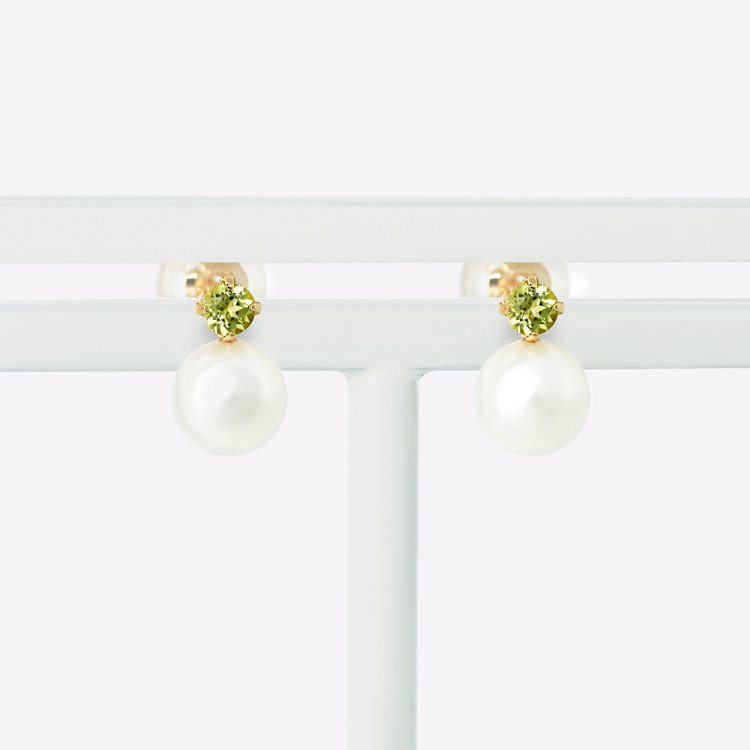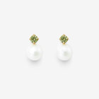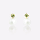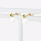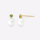 小ぶりなパールとペリドットの組み合わせが、上品な印象のイエローゴールドのピアス。