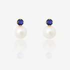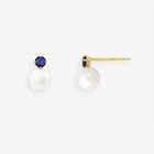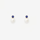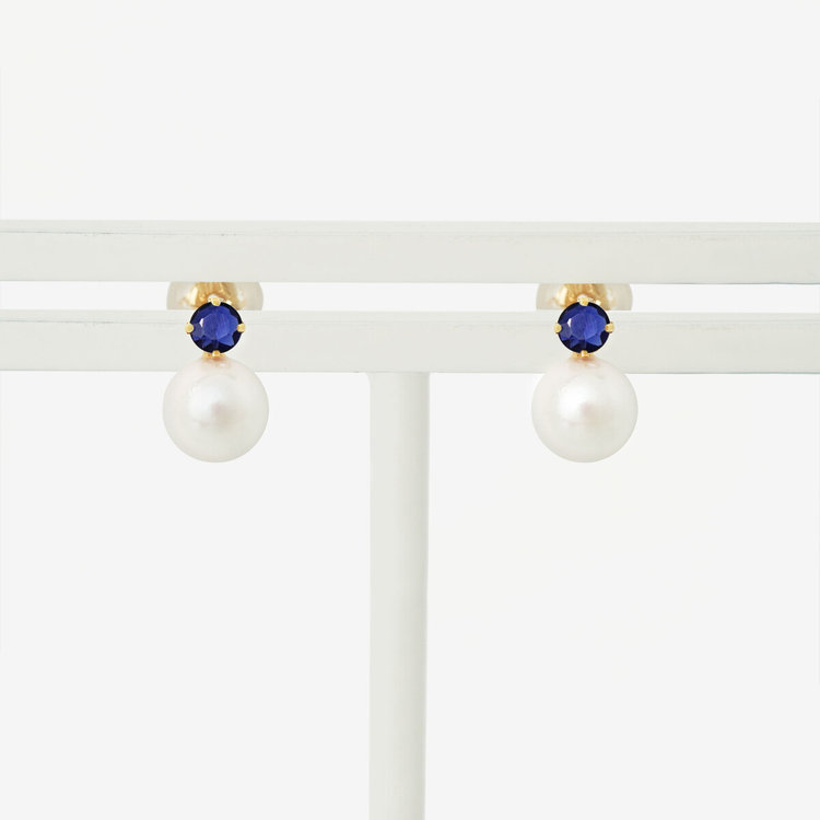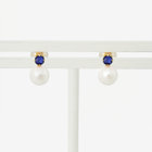 小ぶりなパールとサファイアの組み合わせが、上品な印象のイエローゴールドのピアス。