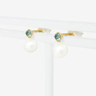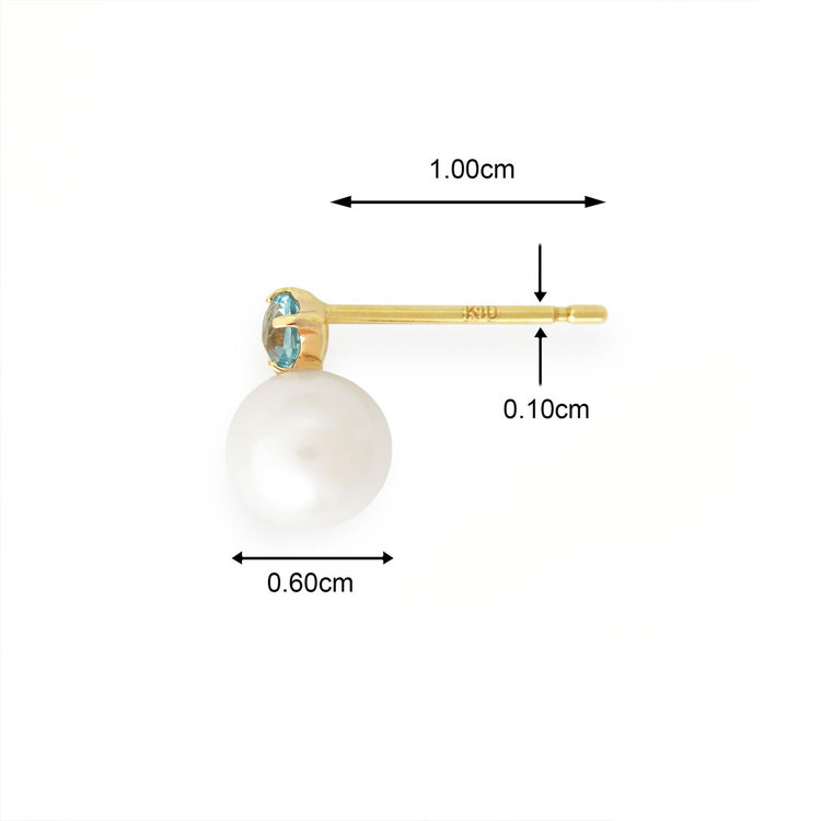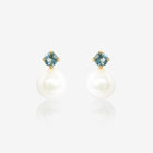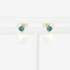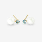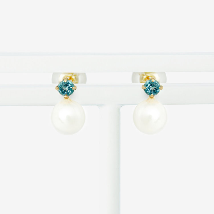 小ぶりなパールとブルートパーズの組み合わせが、上品な印象のイエローゴールドのピアス。