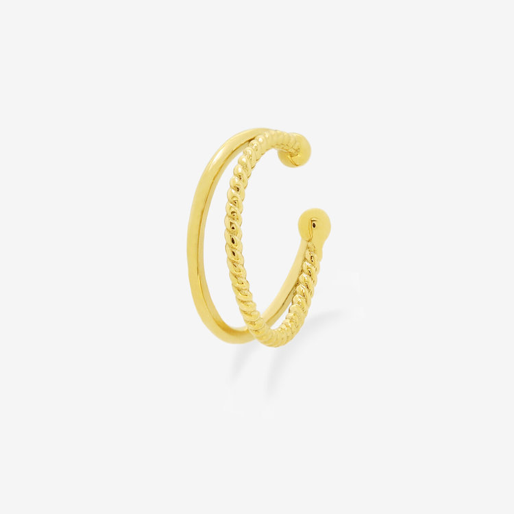 少し大きめでスタイリッシュなデザインのイヤーカフは、つける位置で印象が変わるのでアレンジをお楽しみいただけます。