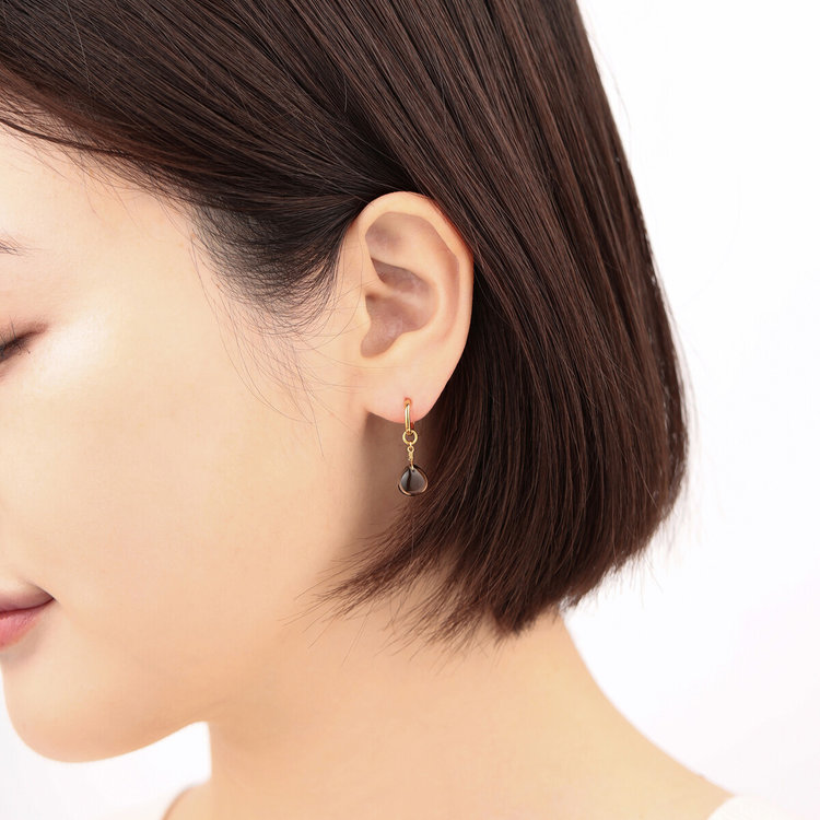 半貴石そのものを生かしたクリーンな輝きを耳もとに、シンプルなデザインのイヤリングで色を楽しんで。