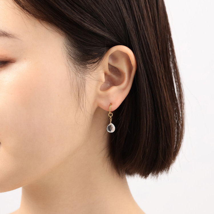 半貴石そのものを生かしたクリーンな輝きを耳もとに、シンプルなデザインのイヤリングで色を楽しんで。