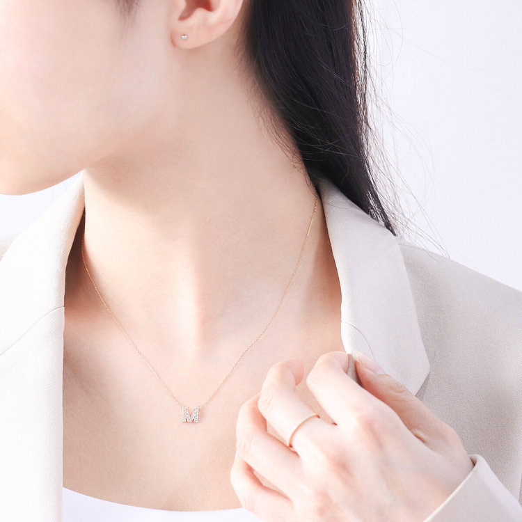 自分のイニシャルを身につけてお守りのように、大切な人のイニシャルを身につけていつも一緒にいるような気分を楽しんだり。胸元できらめくダイヤモンドが、カジュアルな装いにも程よい存在感でデイリーにつけられます。自分へのご褒美やプレゼントにもおすすめです。