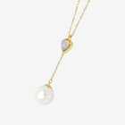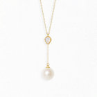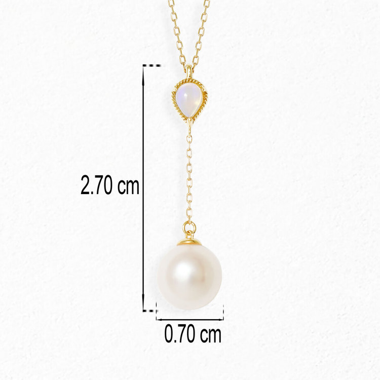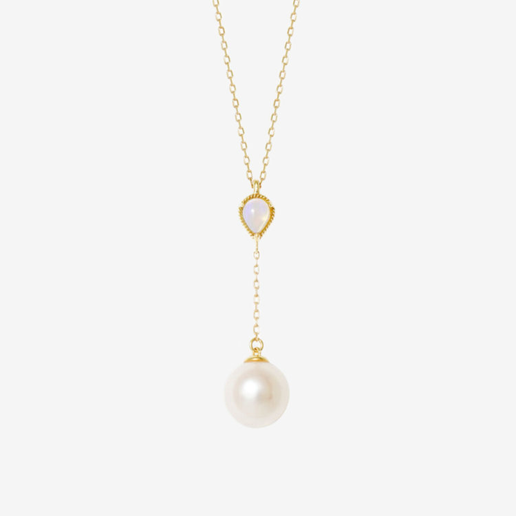 虹のような遊色効果が美しく、幻想的な光を放つオパールとアコヤパールが揺れるのYシェイプネックレス。
