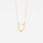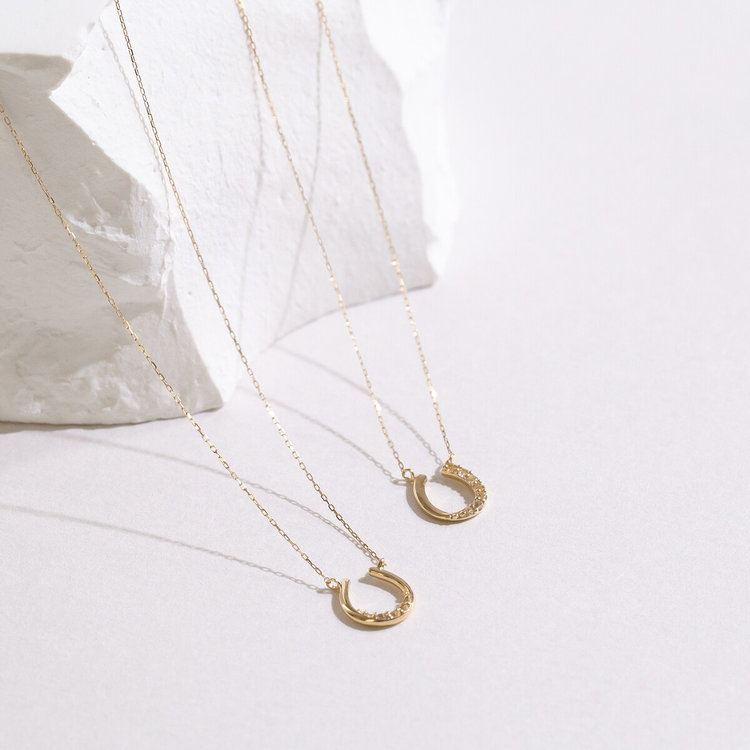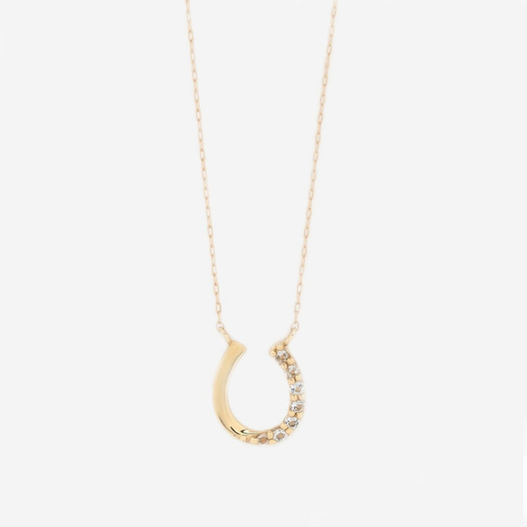 馬蹄モチーフがはっきりわかる大きさで、地金とホワイトトパーズがとてもキラキラして、上品なネックレスです。