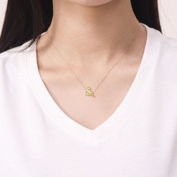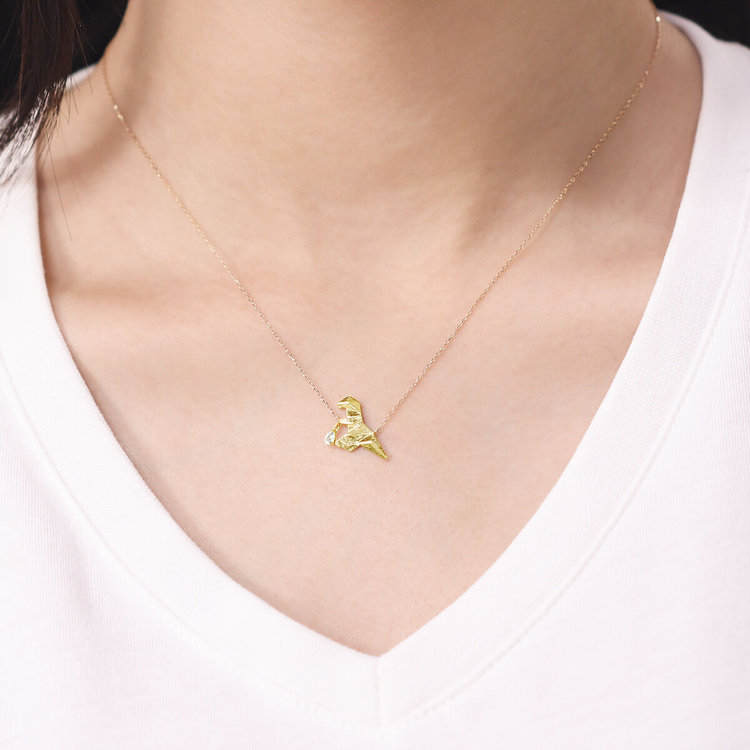 6月誕生石 K10 イエローゴールド レインボームーンストーン ティラノサウルス ネックレス