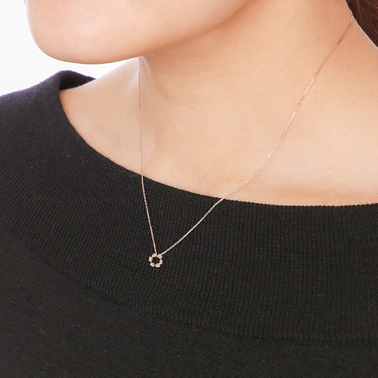 【2026スプリングコレクション】【Rondelle】K10 ピンクゴールド ローズクォーツ ネックレス (M)