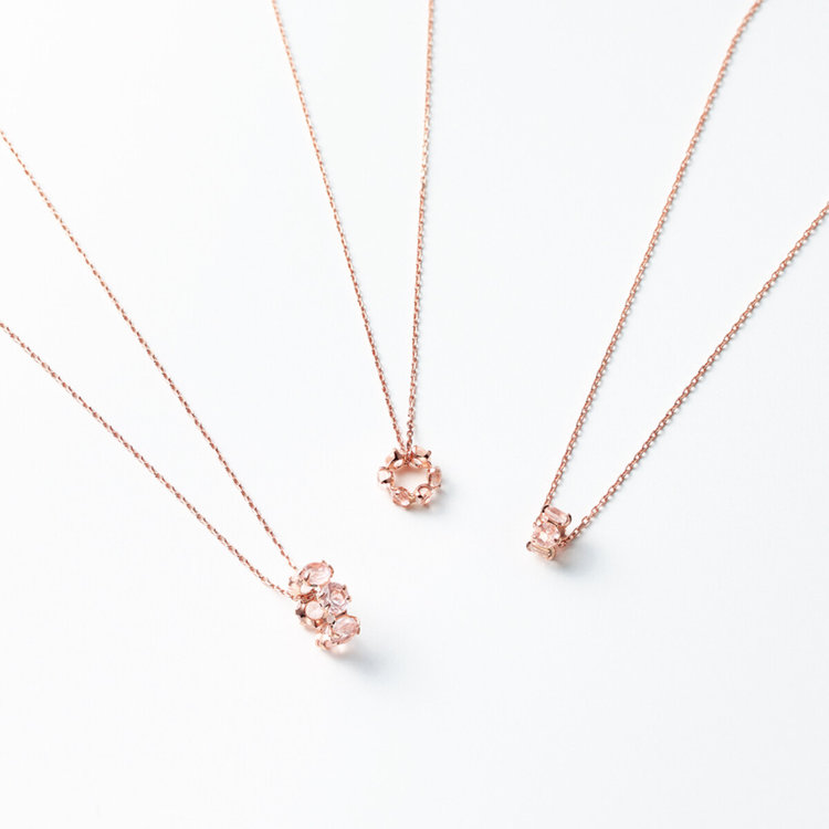 どこから見てもキラキラと輝く、天然石の美しさにココロときめきます。ピンクのグラデーションカラーが胸元から柔らかな印象に。