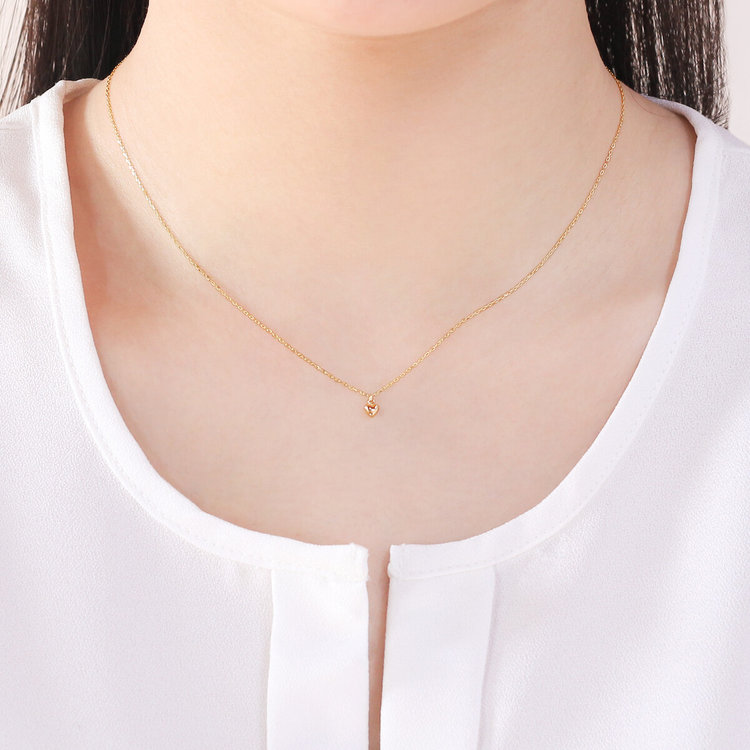 ぷっくりとした膨らみが愛らしいイエローゴールドのハートモチーフネックレス。