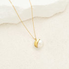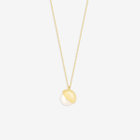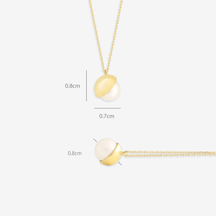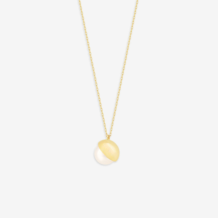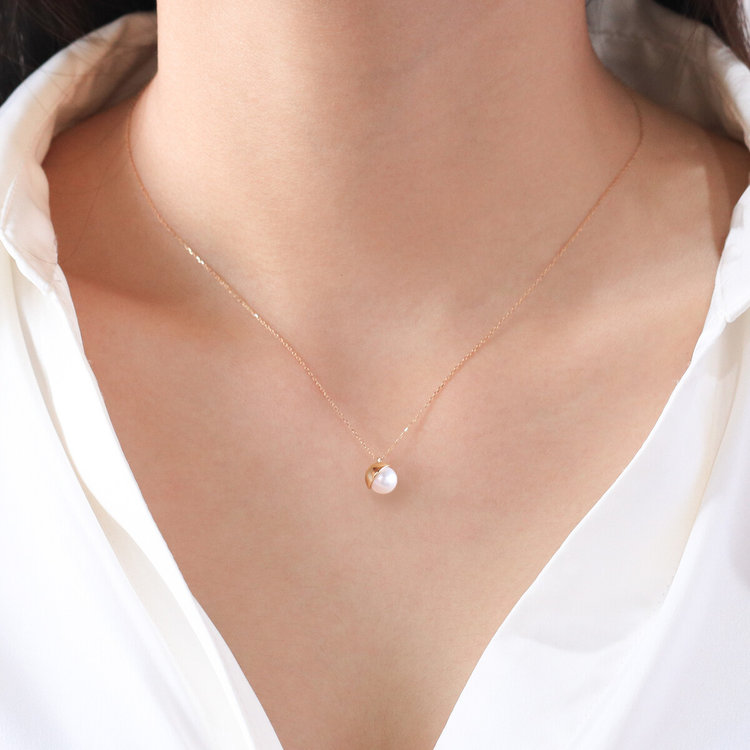 あこや真珠をイエローゴールドで包み込み、どこかクラシカルな雰囲気のネックレス。