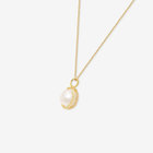 あこや真珠をイエローゴールドで包み込み、どこかクラシカルな雰囲気のネックレス。