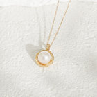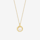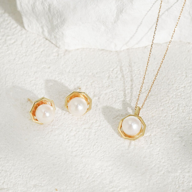 あこや真珠をイエローゴールドで包み込み、どこかクラシカルな雰囲気のネックレス。