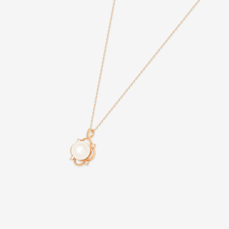 あこや真珠をピンクゴールドで包み込み、どこかクラシカルな雰囲気のネックレス。