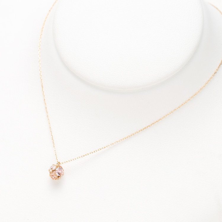 コロンとしたフォルムが可愛らしいネックレス。どこから見てもキラキラと輝く、陽の光を連想させるようなきらめき。眩しい陽の光に透けるような幸福感のあるカラーが魅力。心地よい温もりのある色合いが、自然と顔まわりを明るくしてくれます。