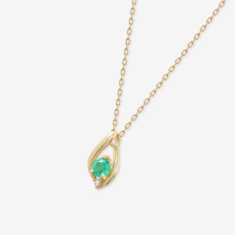 【WEB限定】5月誕生石 K10 イエローゴールド エメラルド しずく ネックレス